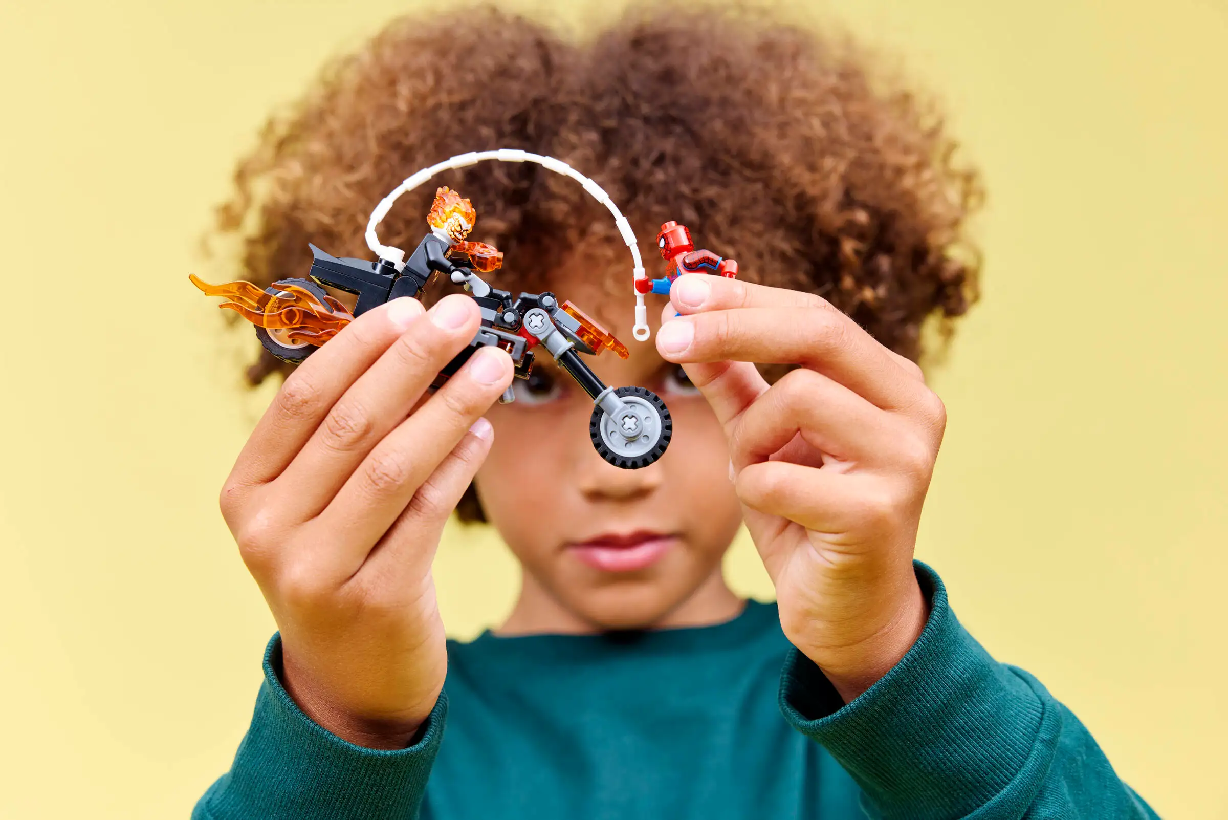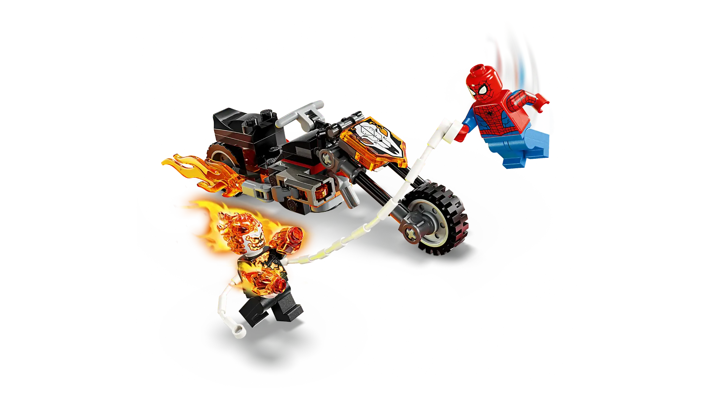 Kickstart high speed chase Super Hero action with this Spider-Man vs. Ghost Rider Motorcycle (76335) building toy for boys and girls ages 6 and up. The LEGO® ǀ Marvel building set’s battle-ready motorcycle and 2 dynamic Spider-Man and Ghost Rider minifigures fuel kids’ imaginative play. The Ghost Rider minifigure is depicted as a skeleton with flames streaming from his hands and head. His iconic motorcycle features 2 flaming tailpipes and 2 built-in stud shooters. The Spider-Man minifigure’s web-rope attaches to the motorcycle, offering endless role play possibilities as the characters battle on and off the high-octane vehicle. This building set makes a great gift idea for the birthdays of young Super Heroes, LEGO builders and fans of collectible Spider-Man merchandise. And, with the LEGO Builder app, kids can build with confidence – zoom, rotate in 3D and track progress with easy-to-follow digital instructions. Building set contains 72 pieces.